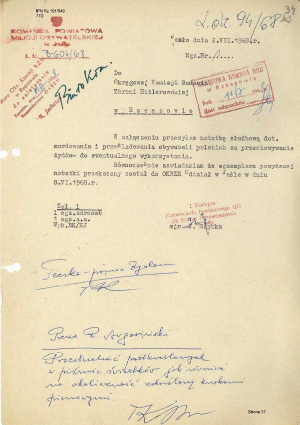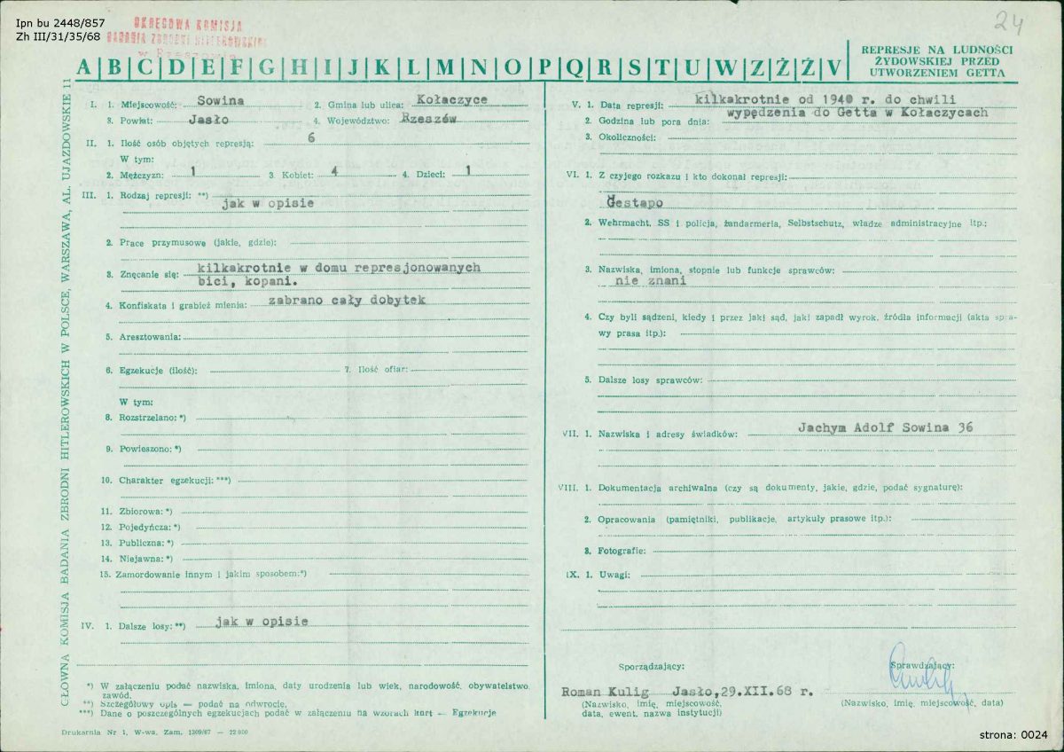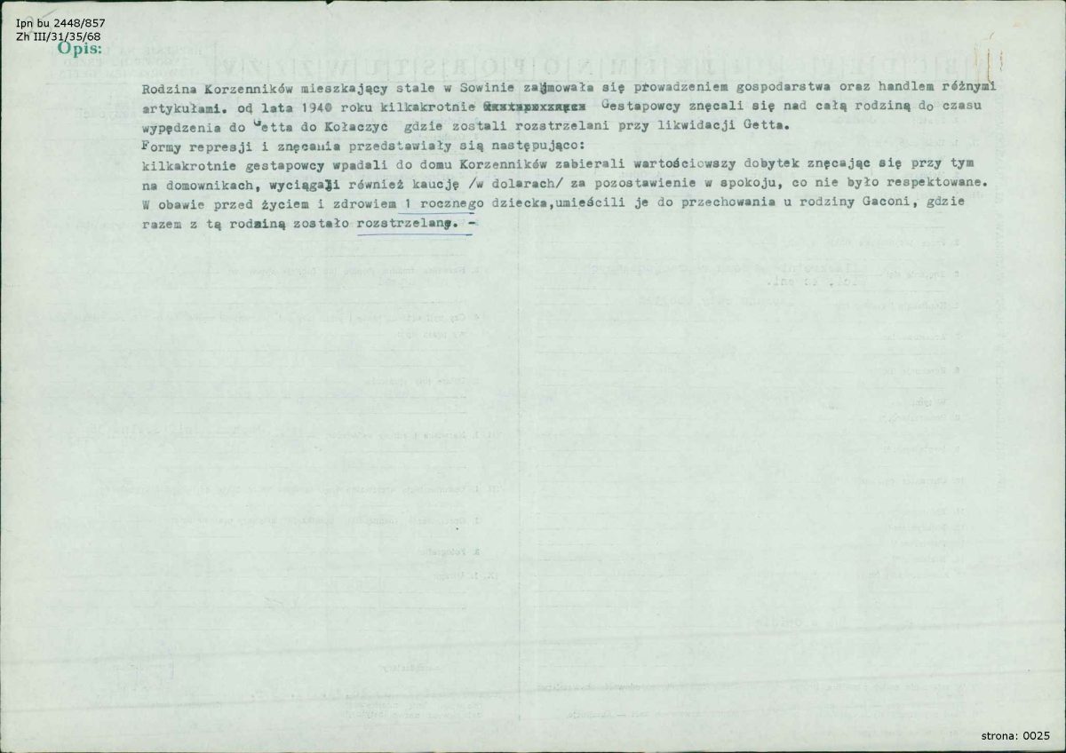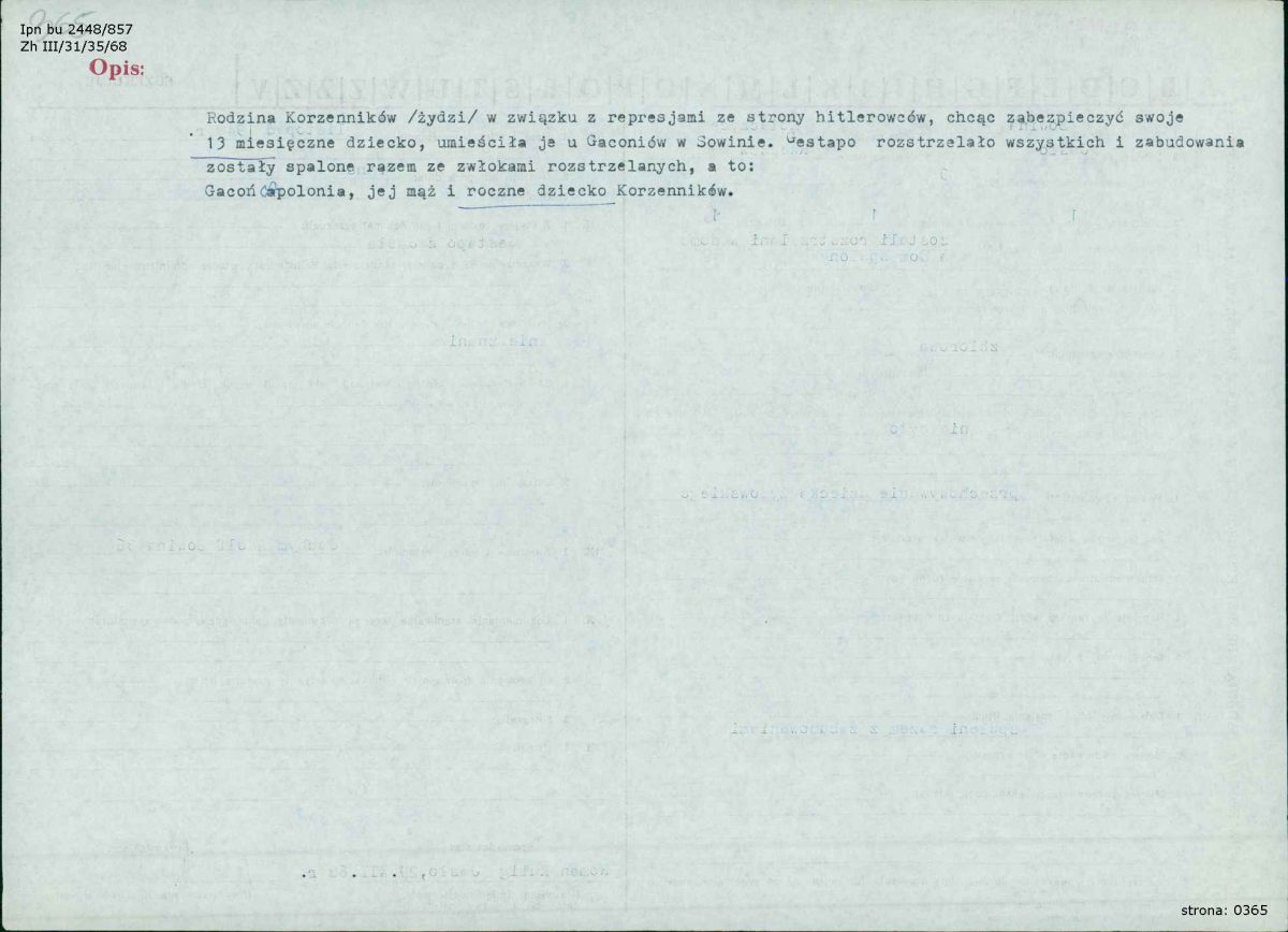 Niestety, wieść o ukrywaniu Żydówki dotarła do Niemców. 28 maja 1943 roku do Gaconiów przybyli funkcjonariusze jasielskiej placówki Gestapo. Po brutalnych przesłuchaniach zamordowali i dziecko, i jego polskich opiekunów. Ciała ofiar zostały pogrzebane w miejscu egzekucji. Po kilku tygodniach zwłoki Gaconiów wydobyto i przeniesiono na cmentarz katolicki. Szczątki żydowskiej dziewczynki do dziś spoczywają w miejscu tragedii.