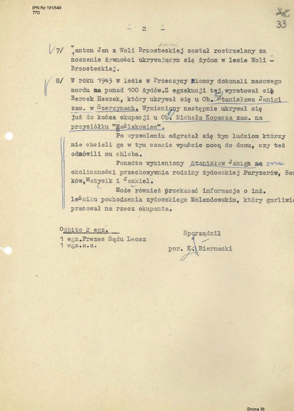 Na szczycie wzgórza między wsiami Bukowa i Januszkowice znajdowało się niegdyś gospodarstwo Apolonii i Stanisława Gaconiów. W czasie okupacji bezdzietne małżeństwo przyjęło pod swój dach dziecko żydowskich znajomych z rodziny Korzenników. Dziewczynka była przedstawiana jako siostrzenica Apolonii.