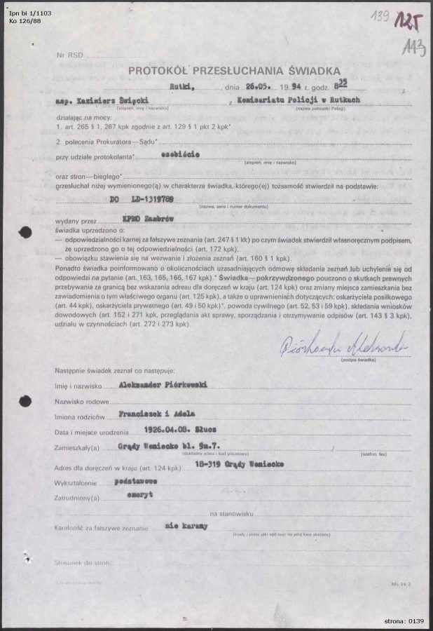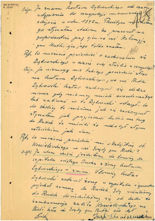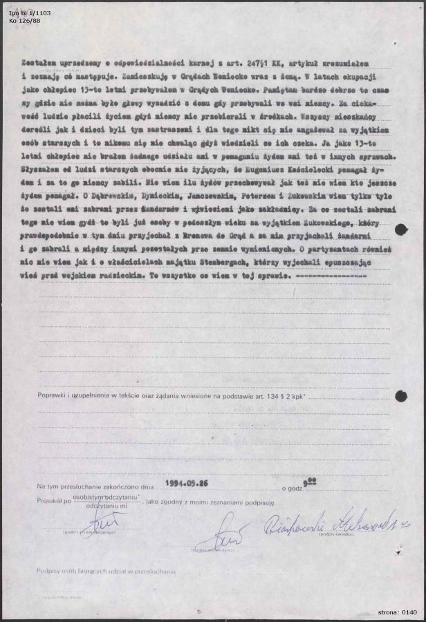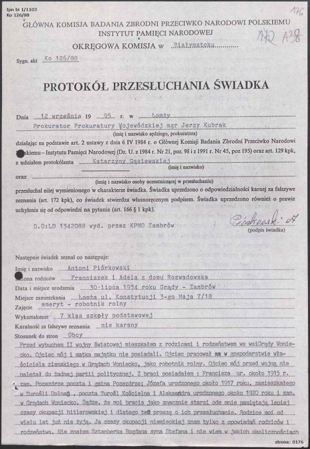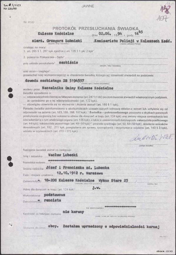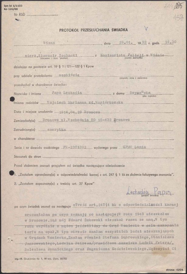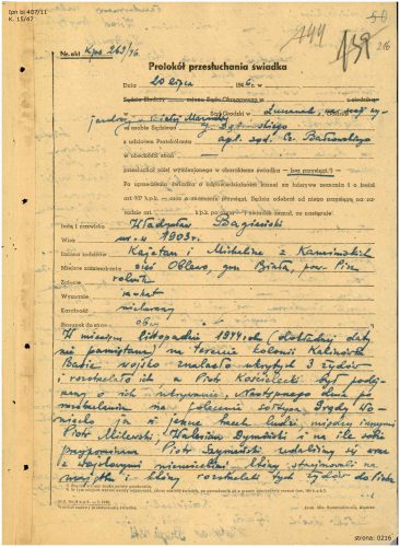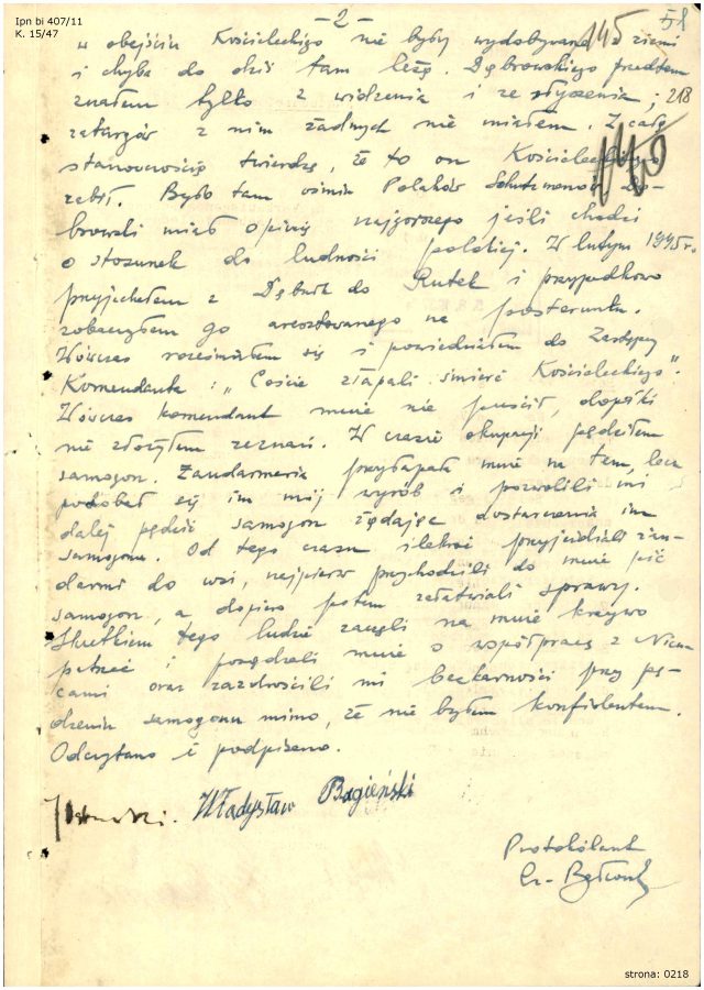 21 listopada 1943 roku, podczas polowania w Grądach-Woniecku, Niemcy odkryli ludzkie ślady w pobliżu leżącego tuż pod lasem gospodarstwa, którego właścicielem był Piotr Kościelecki. Doprowadziły ich one do Żydów, którzy uciekli z likwidowanych z końcem 1942 roku okolicznych gett i ukrywali się w stogach siana. Troje z nich Niemcy zabili na miejscu. Pozostałym, w tym nieznanej z nazwiska kobiecie, udało się uciec. Piotra nie było wtedy w gospodarstwie. Następnego dnia Niemcy przyjechali ponownie. Zastawszy Piotra Kościeleckiego, wyprowadzili go z domu, pobili, a potem zastrzelili.