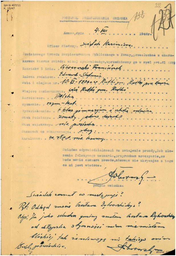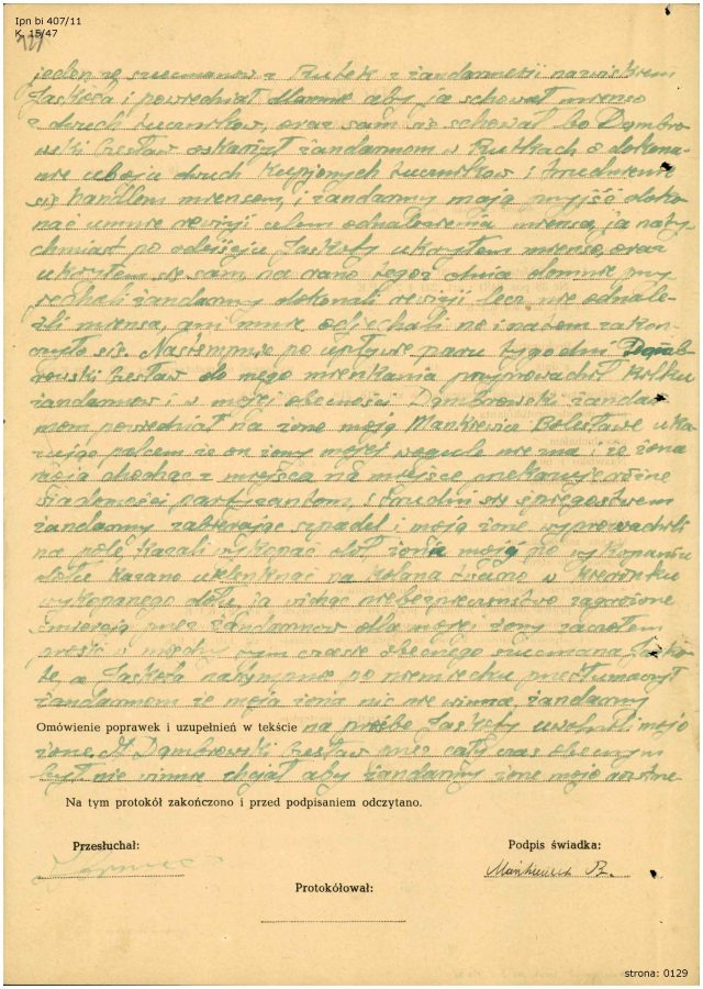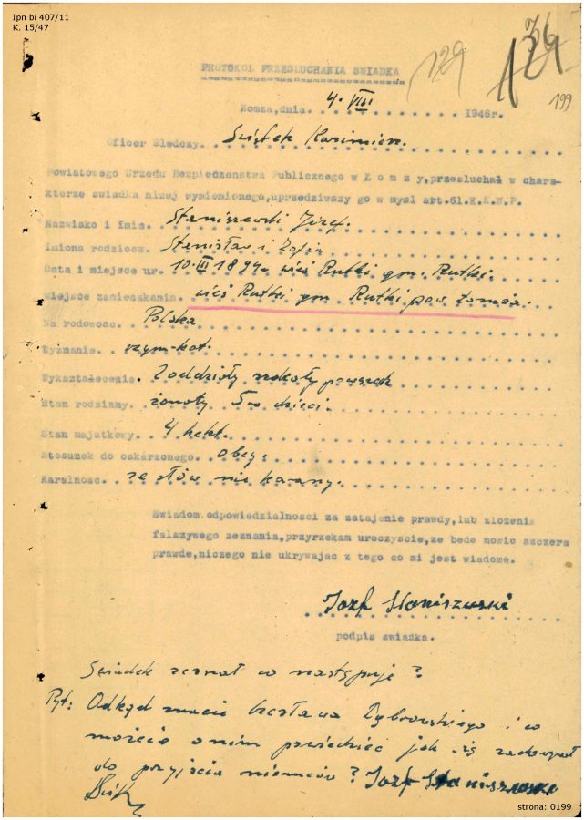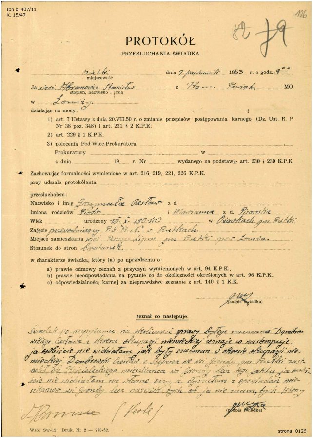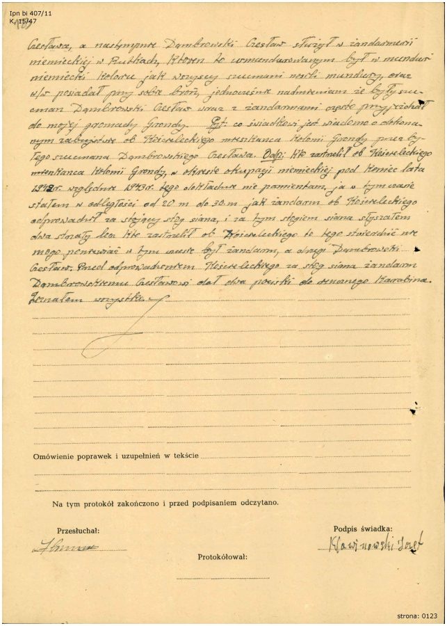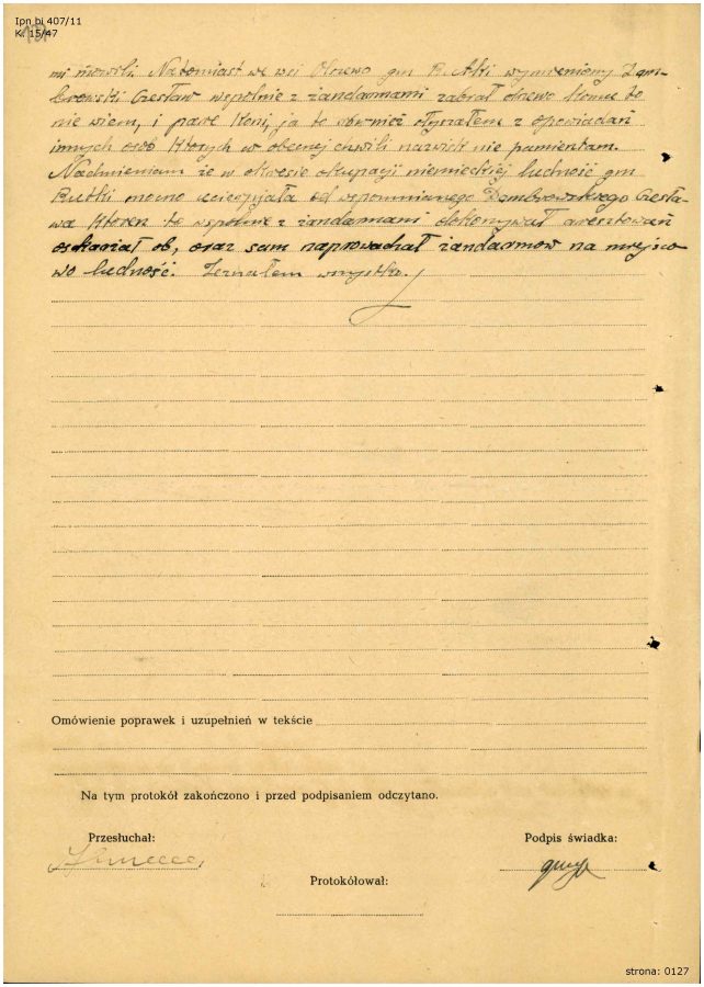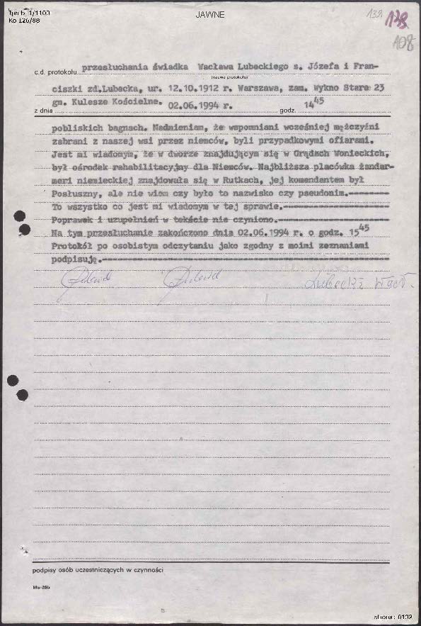 Sprowadzeni na miejsce zbrodni cywile musieli wykopać dół i pochować ciała zamordowanych. Niemcy kazali im także rozebrać dom i zabudowania gospodarcze, a majątek ruchomy oraz żywy inwentarz przewieźli na posterunek żandarmerii w Rutkach.