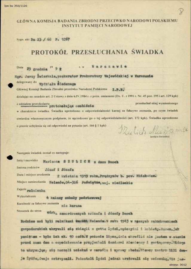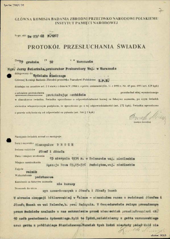 Józefa i Józef Dmochowie mieszkali w Helenowie, mieli sześcioro dzieci. Przed wojną handlowali na targu w Stanisławowie i znali wielu miejscowych Żydów.