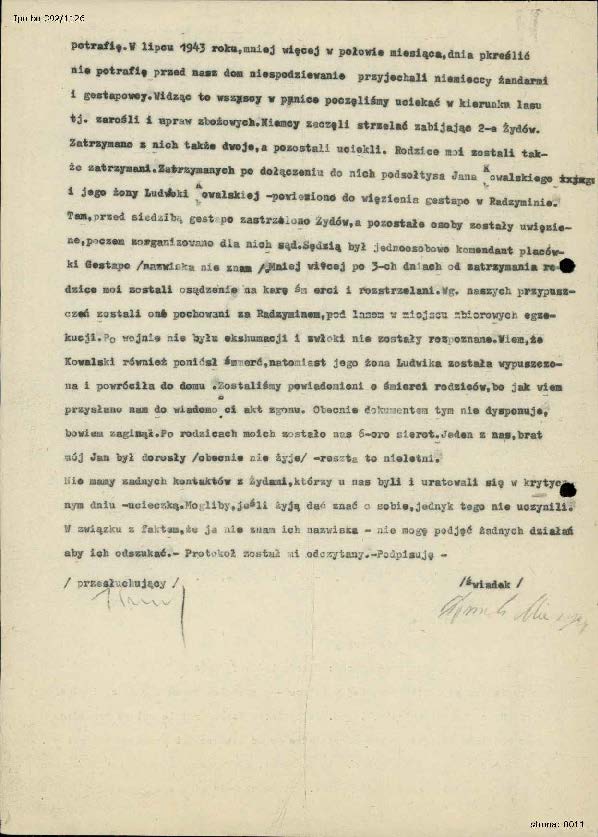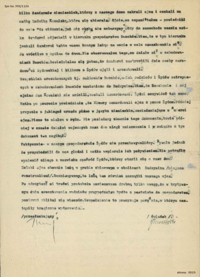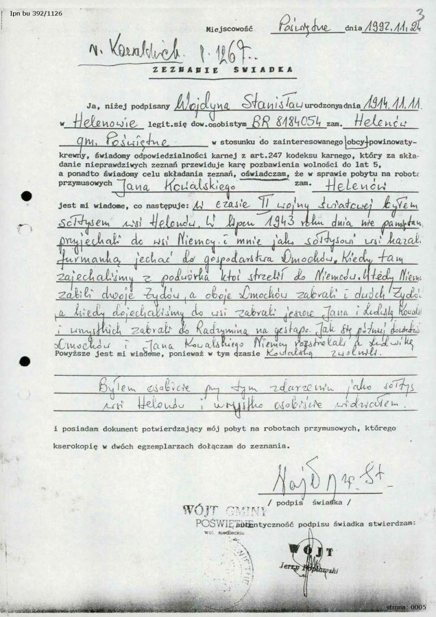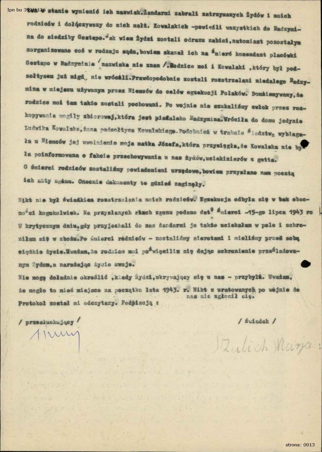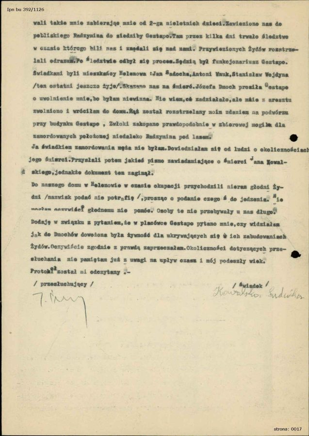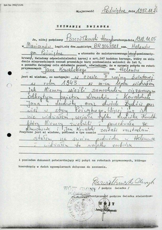 Na posterunku w Radzyminie Niemcy zamordowali dwóch pojmanych Żydów. Ludwikę Kowalską puścili po przesłuchaniach wolno. Józefę i Józefa Dmochów oraz Jana Kowalskiego rozstrzelali 15 lipca 1943 roku.
