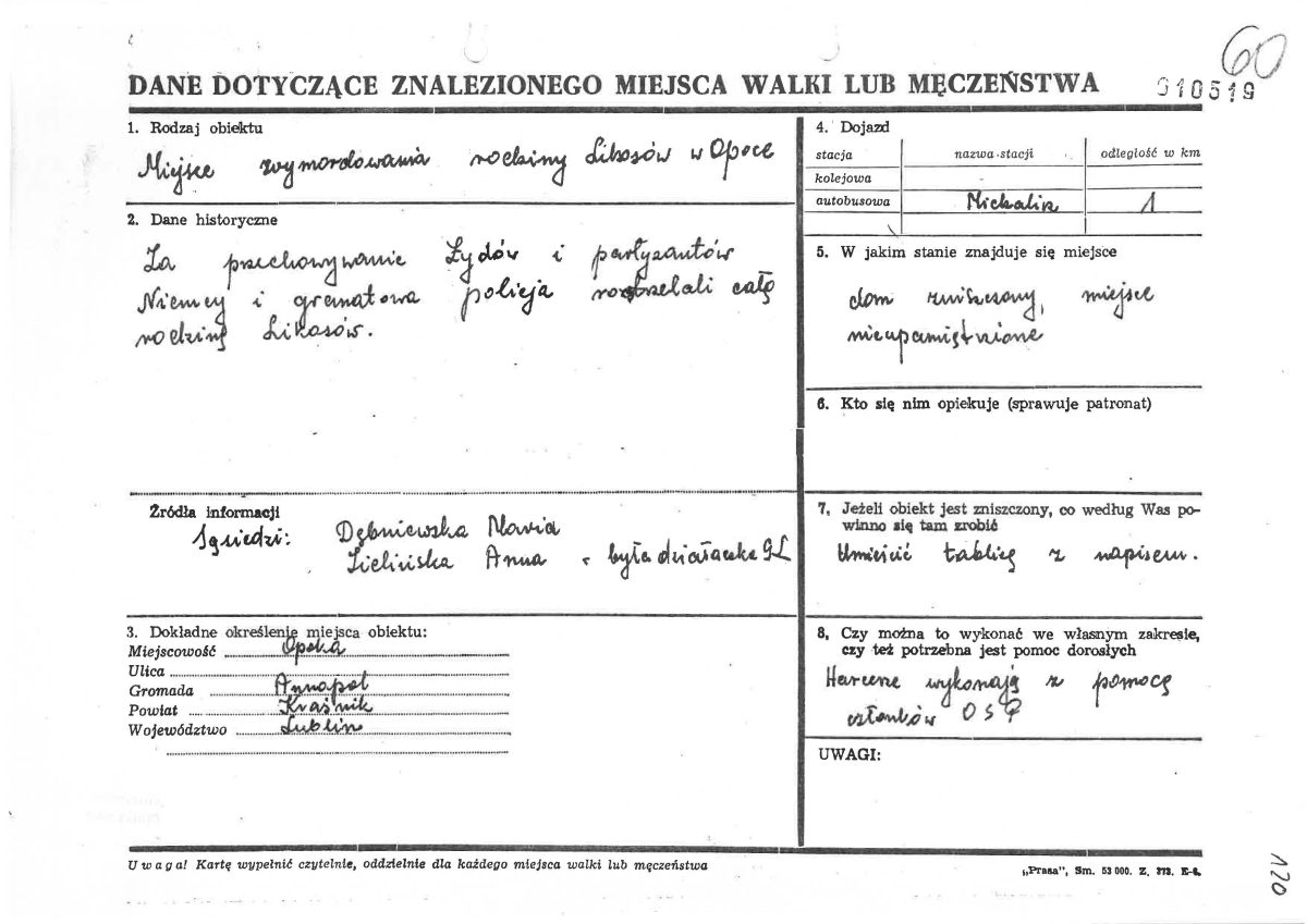 Rankiem 1 czerwca 1943 roku w wyniku donosu do gospodarstwa wkroczyli niemieccy żandarmi. Ostrzelali budynki, pojmali Piotra i Apolonię Likosów oraz Izę Ler, a następnie wszystkich troje zamordowali. Pozostałym Żydom oraz Natalii udało się uciec do lasu.