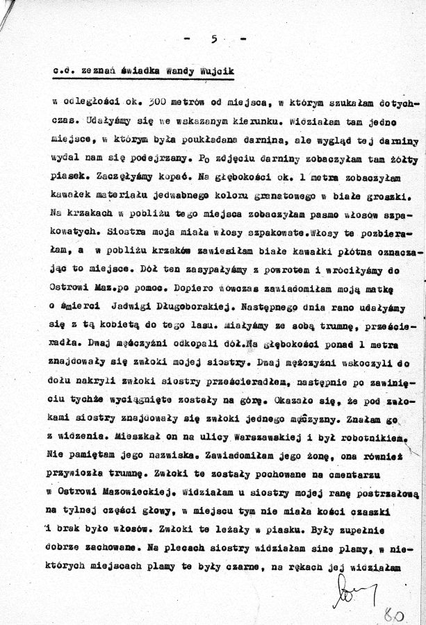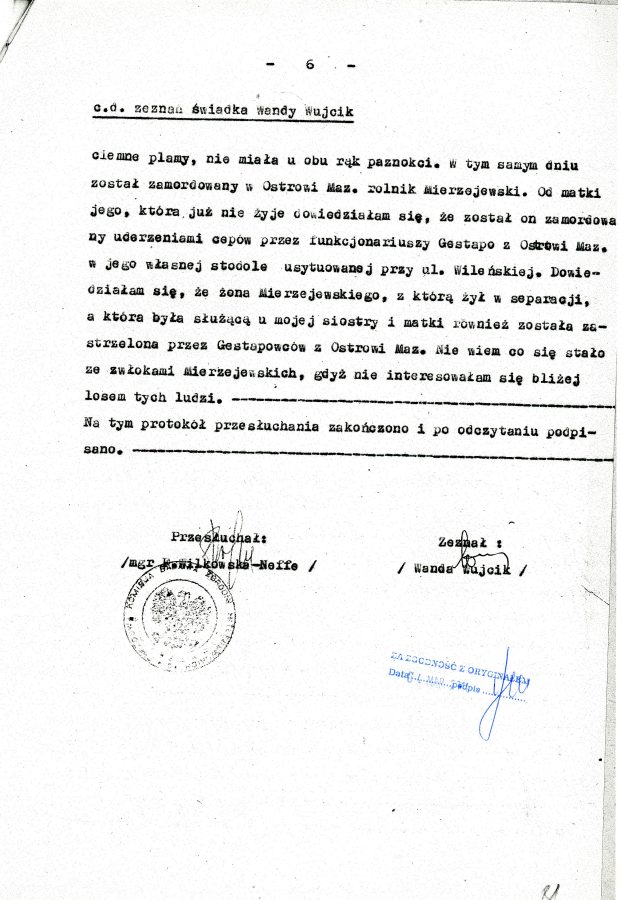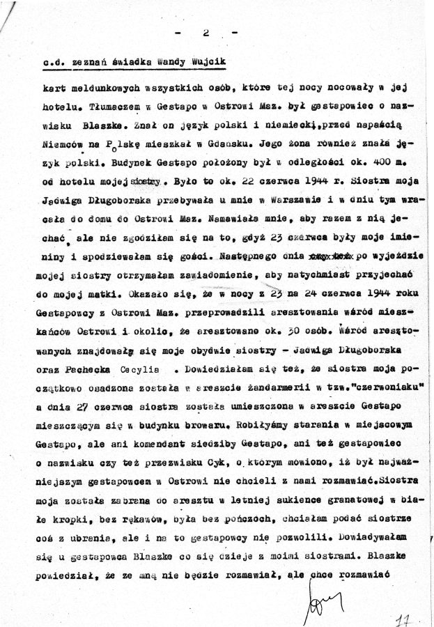 Dzięki intrydze drugiej siostry, Wandy Wujcik, udało się uwolnić Cecylię. Jadwiga po kilku dniach ciężkich tortur została rozstrzelana 29 czerwca 1944 roku w podmiejskim lesie. Przesłuchania i egzekucje prowadził osobiście funkcjonariusz Gestapo Anton Birkenfeld ps. ,,Cyk”, zwany katem Ostrowi. Nigdy nie został ukarany za swoje zbrodnie.
