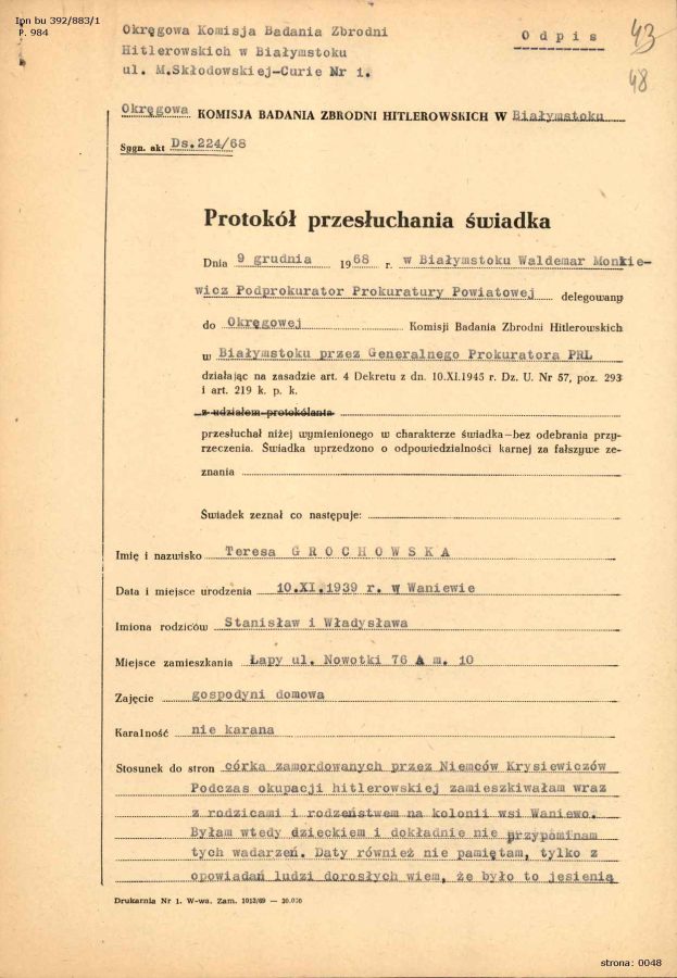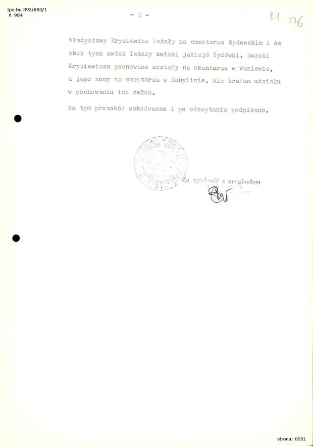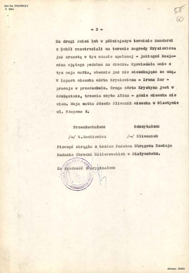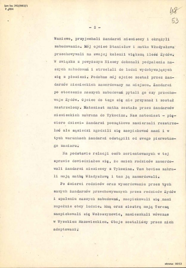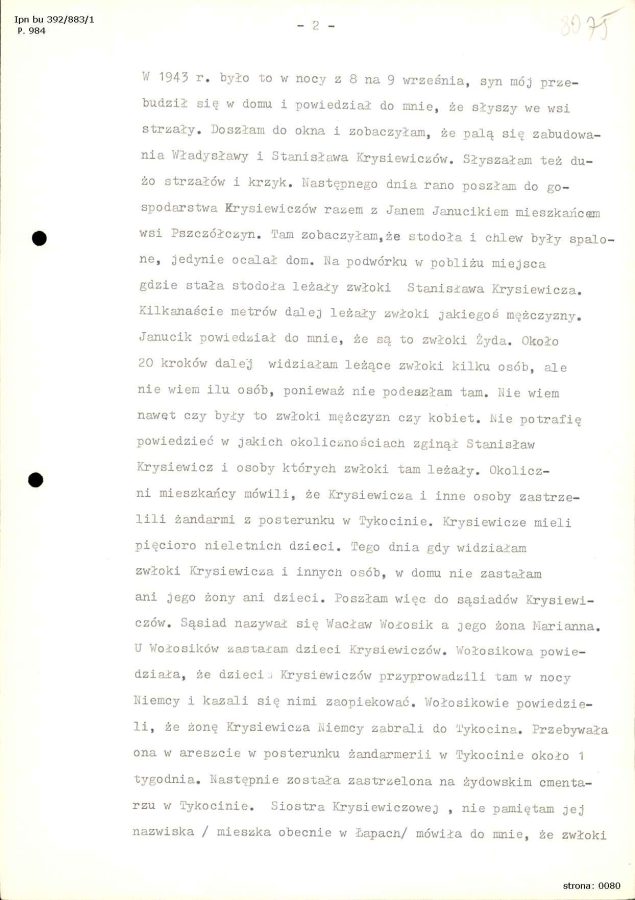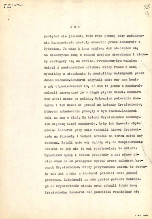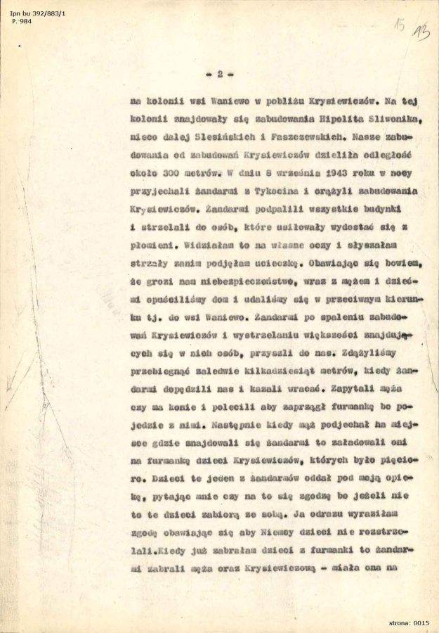 Sąsiadom Krysiewiczów Niemcy postawili ultimatum: albo zaopiekują się dziećmi, albo zginą one wraz ze swoimi rodzicami. Dzieci trafiły później w różne miejsca – do krewnych lub sierocińców. O rodzeństwie i historii rodziców dowiadywały się dopiero po wielu latach.