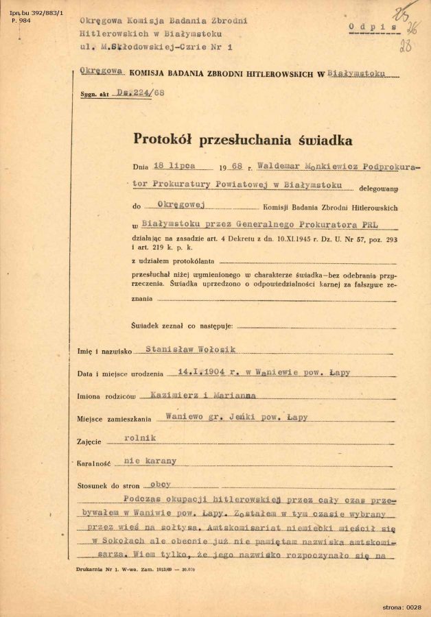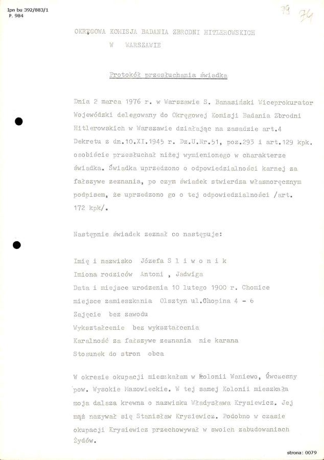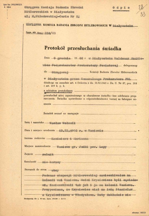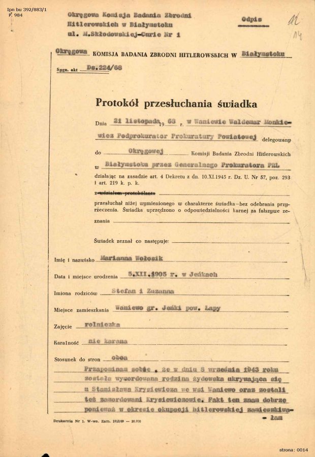 Stanisław i Władysława Krysiewiczowie z Waniewa mieli pięcioro dzieci w wieku od trzech do dziewięciu lat. Jesienią 1942 roku przyjęli do siebie ośmioro Żydów z getta w pobliskich Sokołach. Przygotowali dla nich kryjówki pod stodołą i zapewniali im żywność.