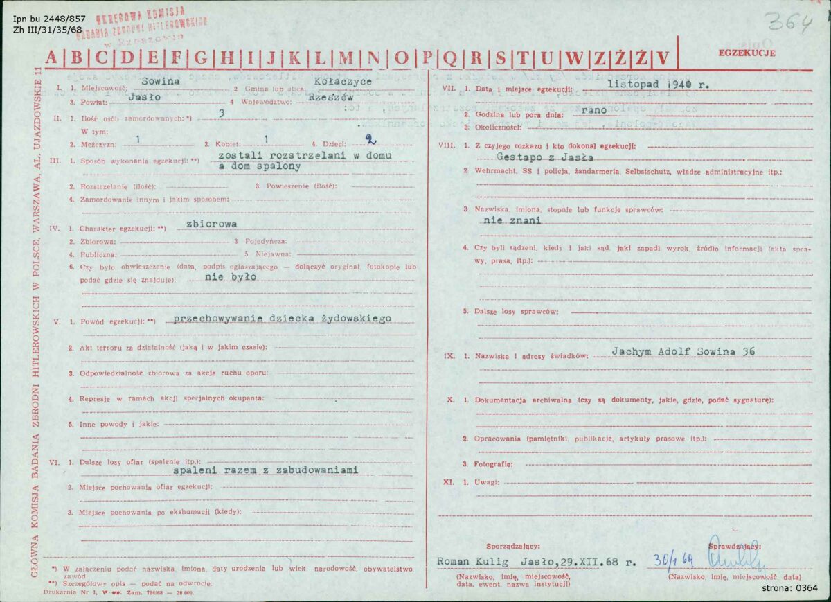 Niemcy zastrzelili na miejscu zarówno znalezionych Żydów, jak i Jana Jantonia, który właśnie przyniósł jedzenie do kryjówki. Mężczyzna osierocił czworo dzieci.